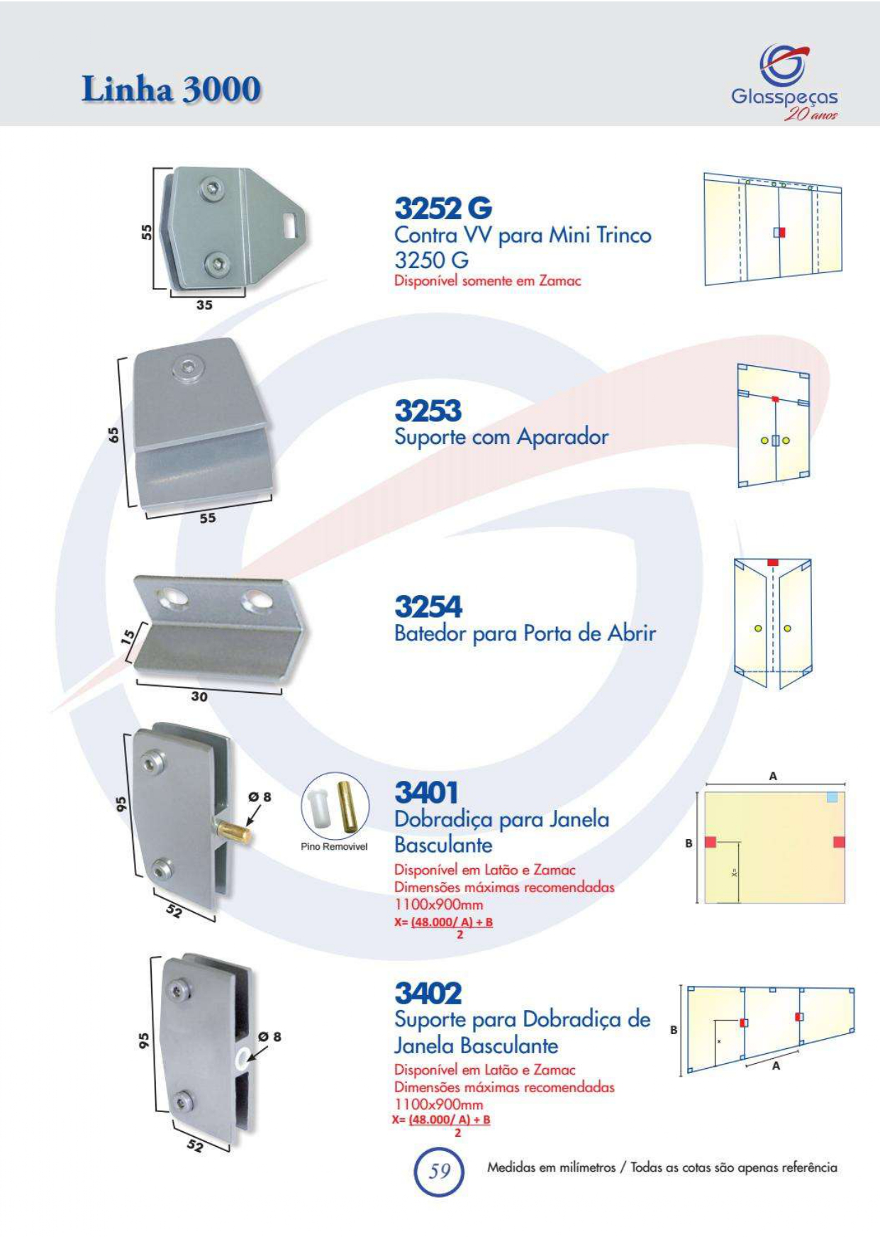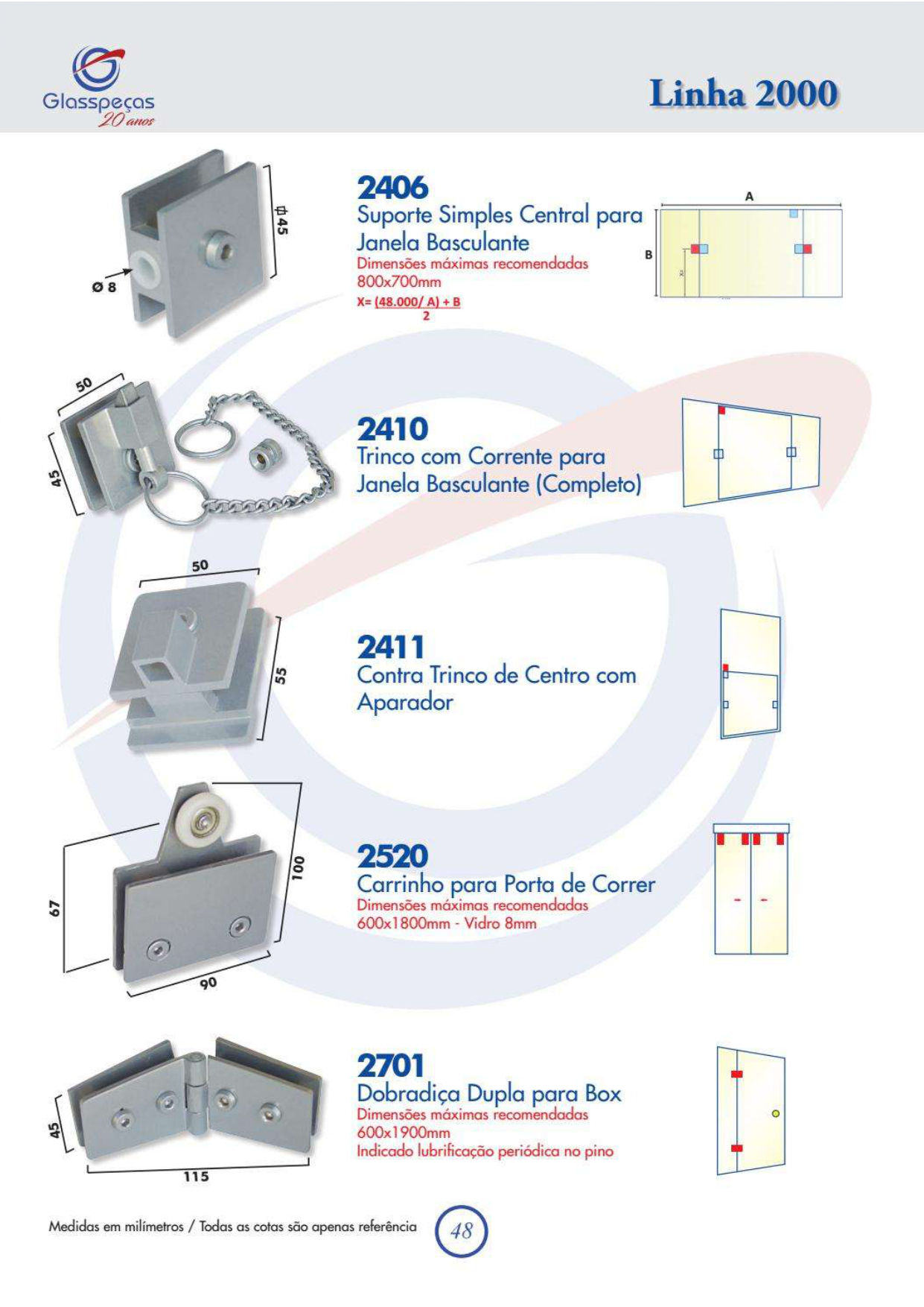 São mais de 500 tipos diferentes de ferragens para atender às mais variadas situações na instalação de vidros.